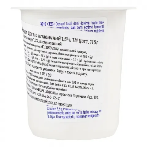 Йогурт Zott Цоттіс 115 г стак. Класік