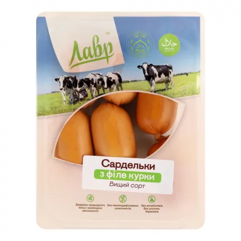 Сардельки Лавр з філе курки 400 г н/о в/ґ