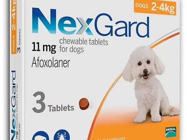 Жувальні таблетки NexGard призначені для профілактики та лікування собак від бліх (Ctenocephalides felis, Ctenocephalides canis) та профілактики зараження іксодовими кліщами (Dermacentor variabilis, Dermacentor reticulatus, Ixodes ricinus sangunisomusuma, Rіxіnussіnusmіsmas). Препарат можна застосовувати також при лікуванні блошиного алергічного дерматиту, можливе використання комплексної терапії. <br> <br>Це дозування (11 мг) призначене для дорослих собак малих порід вагою 2-4 кг, а також для цуценят всіх порід старше 8 тижнів та вагою не менше 2 кг. <br> <br>Діюча речовина таблеток НЕКСГАРД афоксоланер, інсектоакарицид групи ізоксазоліну. Він блокує ГАМК-залежні рецептори членистоногих, що призводить до порушення передачі нервових імпульсів, паралічу та загибелі паразитів. Такий вплив препарат чинить тільки на безхребетних та абсолютно безпечний для ссавців, і зокрема для собак. Один прийом NexGard гарантує знищення бліх на тварині протягом 6-8 годин, кліщів протягом 48 годин, а також запобігає повторному зараженню ектопаразитами протягом 4 тижнів.