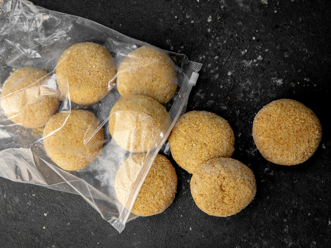 Борошно пшеничне вищого сорту, хек філе, цибуля ріпчаста, вершки рослинні, сухарі паніровочні, сіль кухонна, перець чм. Алергени: глютен, риба, продукти з молока (включаючи лактозу)