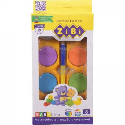 Фарби акварельні водорозчинні Jumbo Baby Line з пенз. 8 кол.пласт./кор. ZB.6580