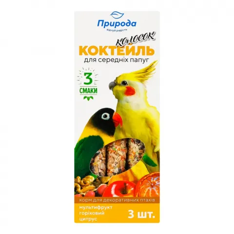 Корм Коктейль Колосок д/папуг 90 г д/середніх папуг (мультифрукт, горіх, цитрус)