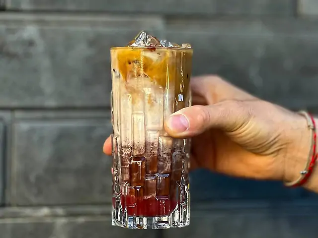 Холодний американо з крафтовим соусом із маракуйі. Подається на краші.